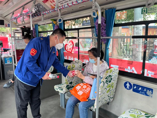 黃河公司本著“奉獻(xiàn)愛(ài)心、勇?lián)鐣?huì)責(zé)任”的理念,統(tǒng)籌做好疫情防控與志愿服務(wù)工作,在217路設(shè)立一臺(tái)高考服務(wù)車(chē)的基礎(chǔ)上,又增設(shè)了一臺(tái)“勞模愛(ài)心驛站”高考服務(wù)車(chē),即由沈陽(yáng)市勞動(dòng)模范、260路駕駛員繆立眾駕駛的公交車(chē)。