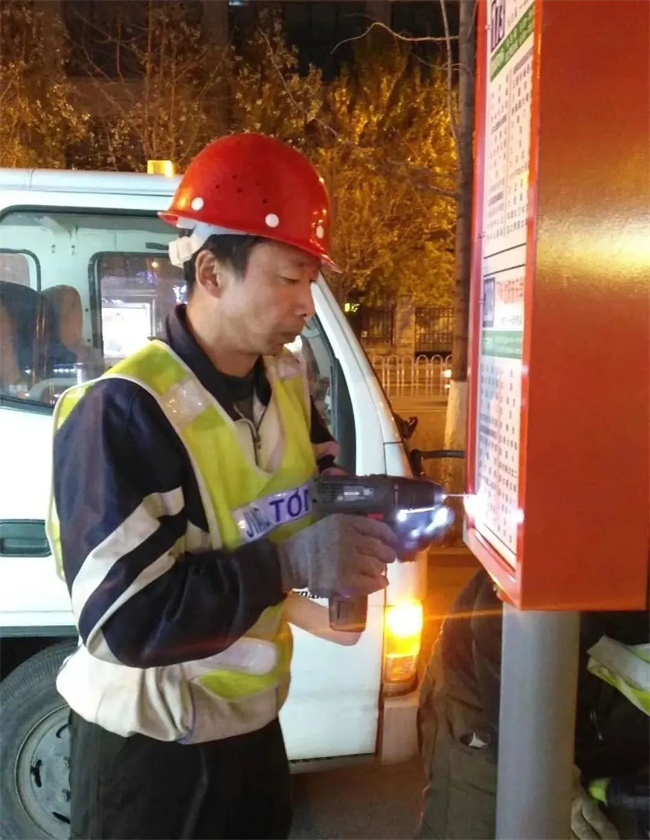 路務(wù)大隊(duì)職工放棄個(gè)人節(jié)假日和休息時(shí)間,加班加點(diǎn)修復(fù)破損候車?yán)炔AА⒑蜍嚴(yán)茸?、危險(xiǎn)站桿,及時(shí)更換全市公交候車?yán)鹊男麄靼寮案鳁l線路的運(yùn)營(yíng)站務(wù)信息。