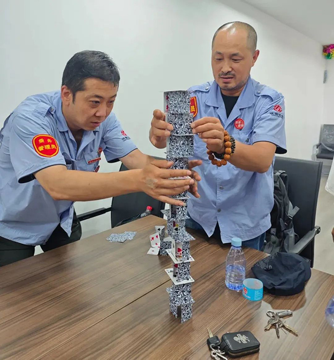 活動(dòng)伊始,老師將參加活動(dòng)的19名職工分成了三組,大家在老師的指導(dǎo)下進(jìn)行了切土豆、馬蓮花開等互動(dòng)游戲,現(xiàn)場(chǎng)氣氛迅速活躍起來。隨后,通過撲克擺放、卡牌等游戲,讓大家逐漸了解自己和隊(duì)友的性格特點(diǎn)、興趣愛好以及潛在的心理需求,為后續(xù)的團(tuán)隊(duì)協(xié)作打下了良好的基礎(chǔ)。