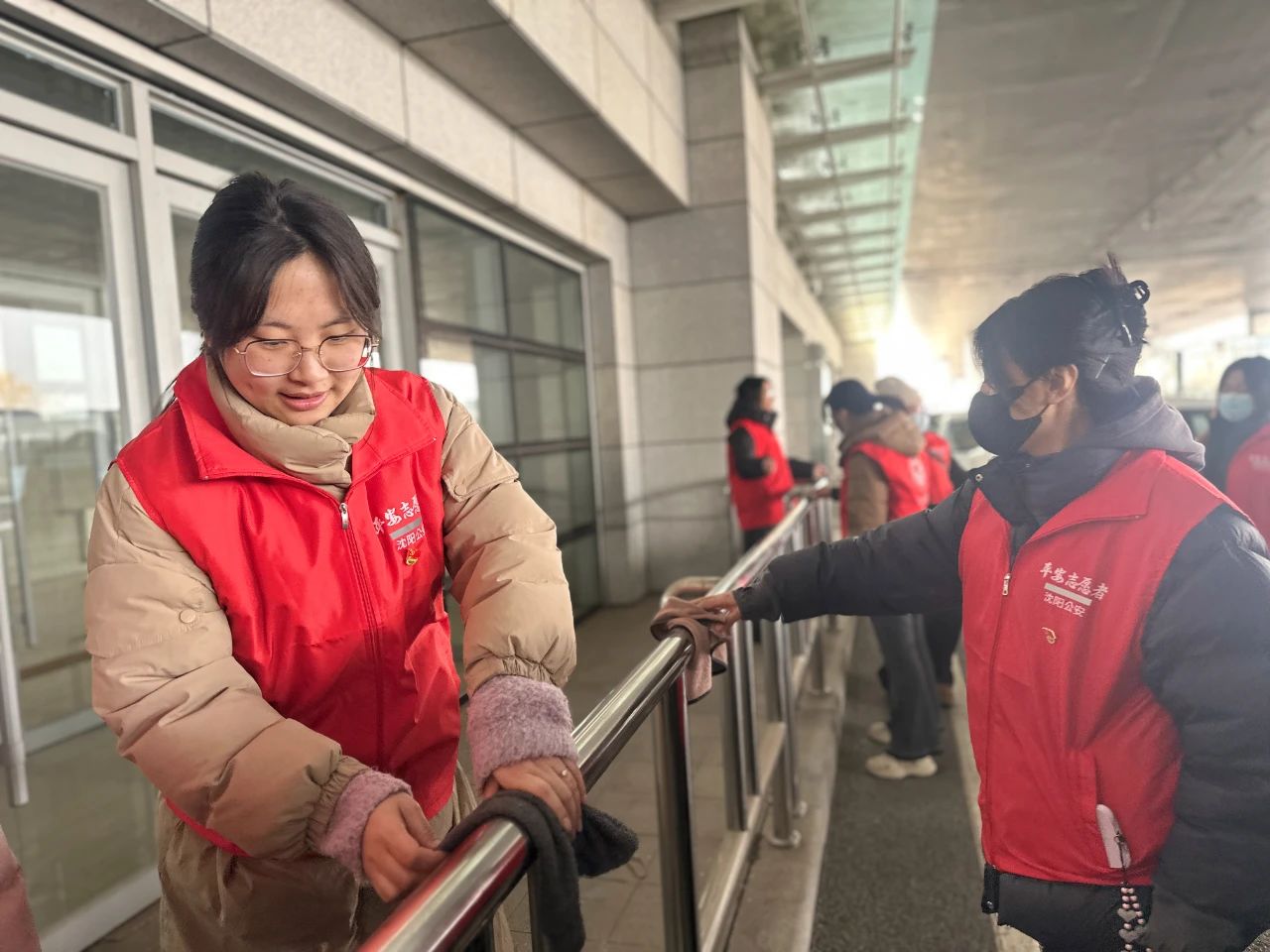 在北站公交樞紐站,志愿者們認(rèn)真清掃公交樞紐站內(nèi)的垃圾、擦拭公交候車?yán)纫约芭抨?duì)護(hù)欄,不放過任何一個(gè)衛(wèi)生死角,為乘客們營造了一個(gè)整潔舒適的候車環(huán)境。