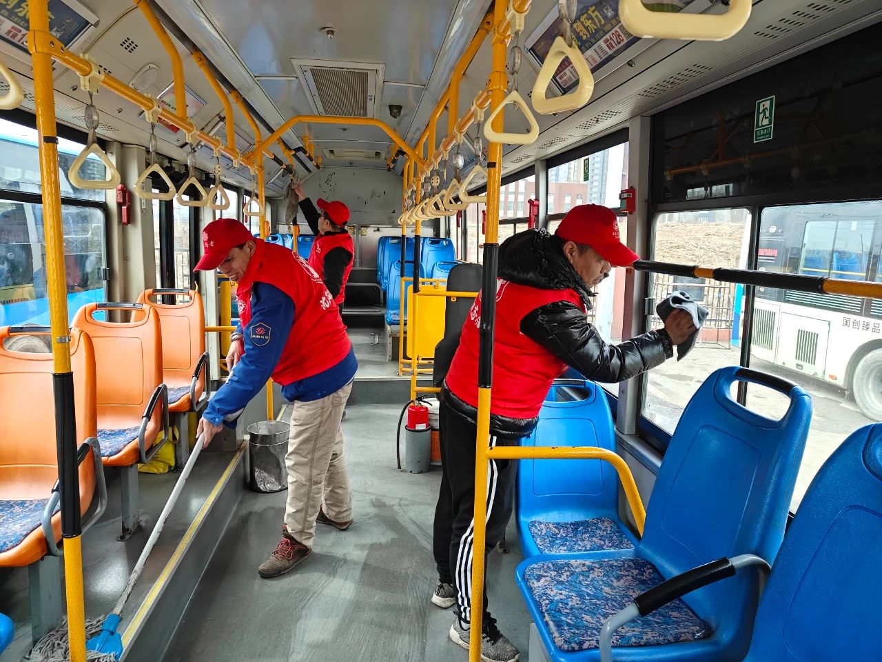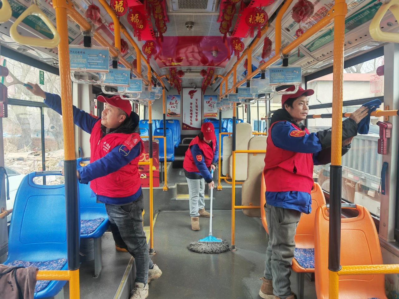 早春的寒風(fēng)依舊冷冽,活動(dòng)中,志愿者們不畏寒冷,身穿帶有志愿服務(wù)標(biāo)識(shí)的紅色馬甲,手拿清潔工具,對(duì)公交車輛、場站、候車?yán)鹊葓鏊M(jìn)行清掃,為乘客提供干凈舒適的出行環(huán)境。