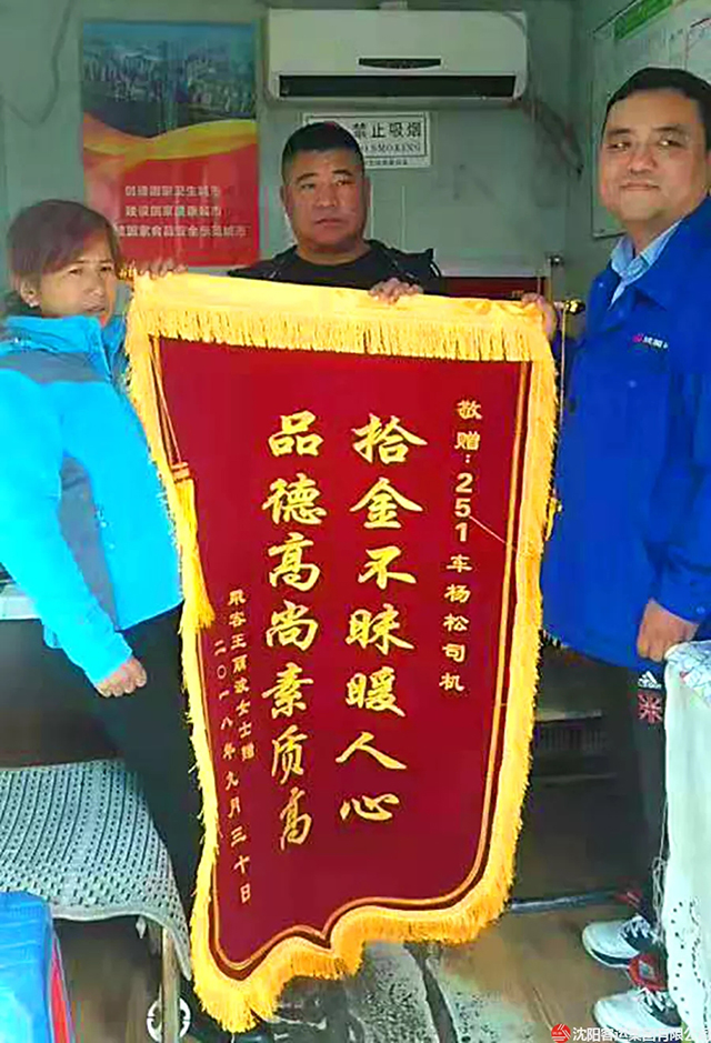9月29日,康利公司251車隊973車駕駛員楊松上午10點左右,從龍之夢方向開往站西廣場到終點時拾到了一個背包,他馬上交給了車隊,在查找包內(nèi)證件時發(fā)現(xiàn)有一萬元現(xiàn)金。經(jīng)過多方聯(lián)系終于找到了失主。次日,為了表達自己的感激之情,失主王女士送來了錦旗。